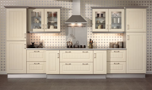 An ivory kitchen brought right up to date when combined with aluminium.